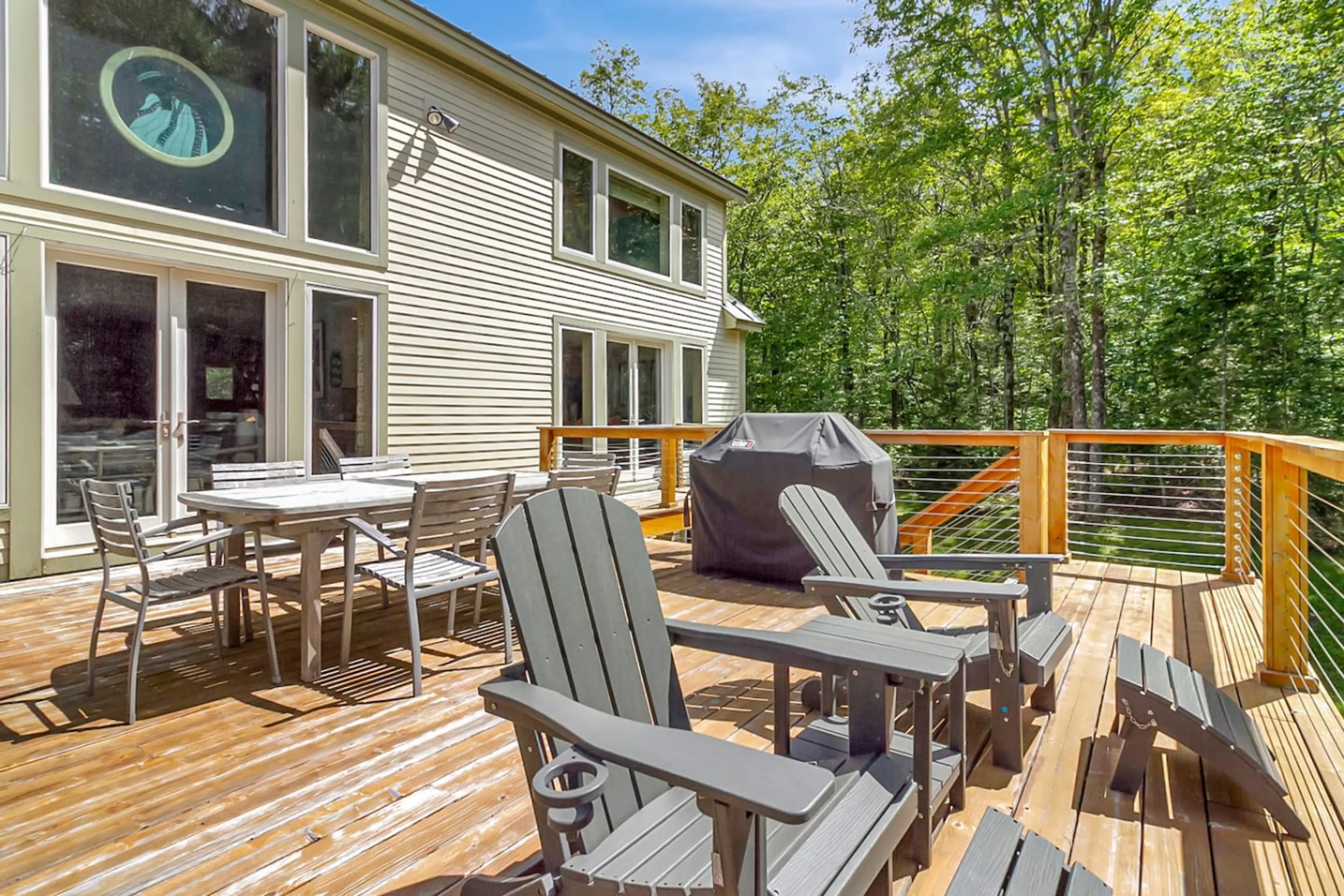 Bringing a taste of the Midwest to Southern VT, this 5 bedroom home is one for the 'Gram! From the gigantic tusks, to the massive high-backed dining room chairs, to the enormous hot tub, you will want to capture every moment here!! • 5 bedrooms • 5.5 bathrooms • Sleeps 14 across 9 beds (2 Kings, 1...